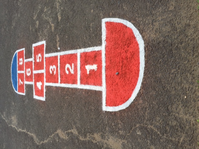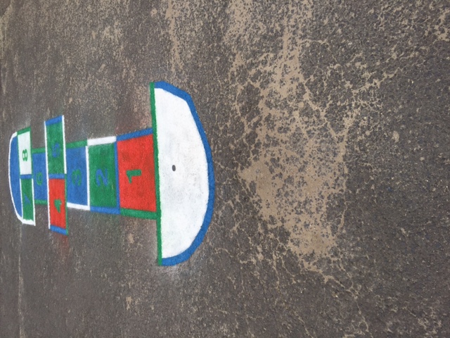 Sous un beau soleil, ce mercredi 29 juin les maîtresses et Cathy se sont retrouvées pour un atelier peinture de marelles.